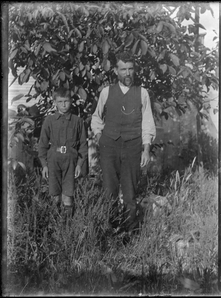 This image is believed to have been taken by Palmerston North Engineer Edwin Daniel Berry or his son Frank. It depicts a young boy who appears in several images in the Berry Family Collection, and is believed to be youngest son Zenas Jefferson Berry (b.1906). The man next to him is his father Edwin Daniel Berry, founder of Berry Engineering.