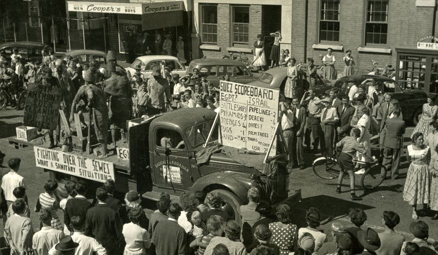 Massey University students protesting over the conflict between Egypt and Israel over control of the Suez Canal.