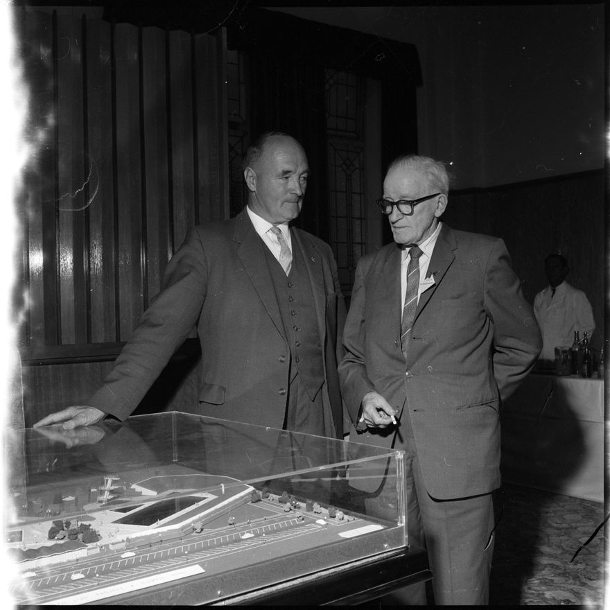 This image was taken for a story that ran in The Manawatu Evening Standard on 13th March, 1963. "Mr G. A. Walsh, M.P. for Tauranga, and Cr J. A. Colquhoun had a number of common interests to discuss when they met yesterday. Mr Walsh was a pupil of Cr Colquhoun's at the Palmerston North Boys' High School for a number of years while living in Foxton ."