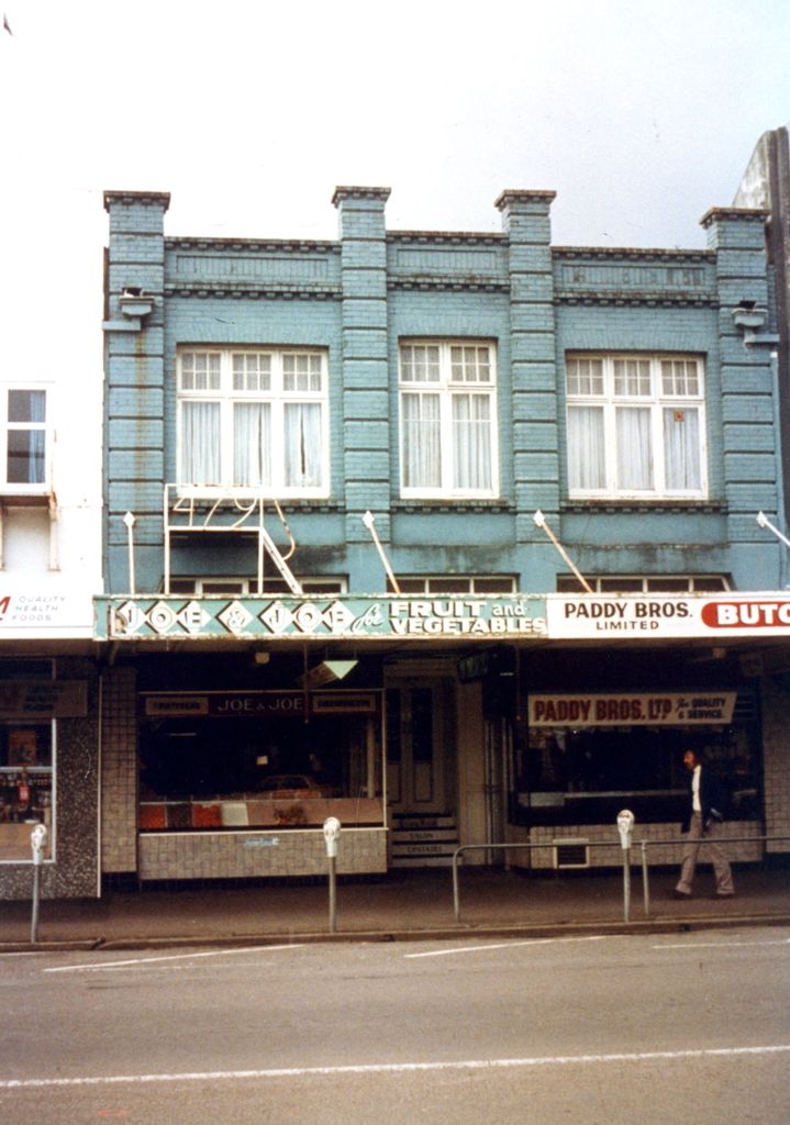 Joe and Joe fruit and vegetable shop and Paddy Bros. butcher on the eastern side of The Sqaure between Main Street and Church Street.