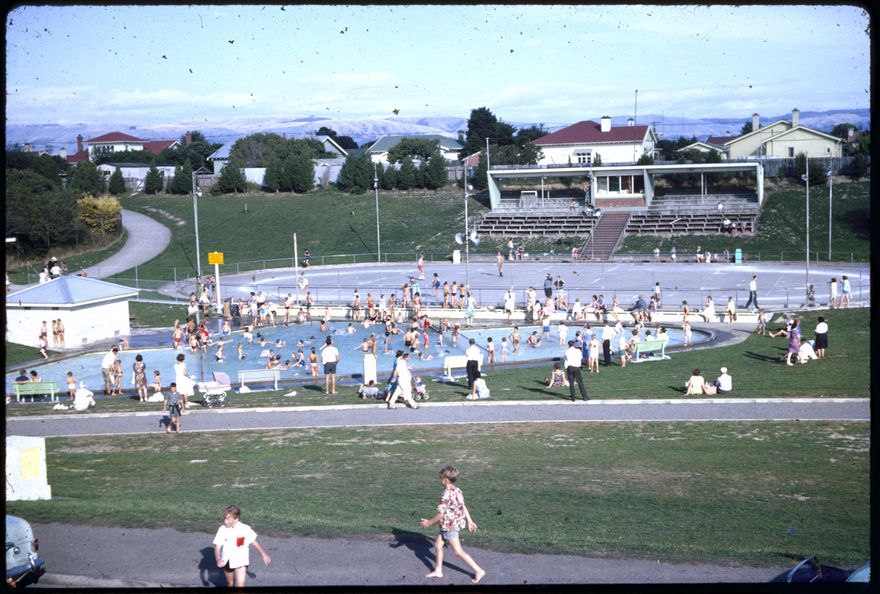 Memorial Park (previously named Fitzroy Park) at Terrace End, was formerly a metal pit used by the Railways Department for ballast, from about 1876-1937. The Palmerston North City Council purchased the 21 acre site in 1938 and developed it into a recreational and sporting area. A WWII memorial was erected 1952 and in 1954 Fitzroy Park was officially dedicated as Memorial Park. In 1983 the obelisk was removed and now the gates stand as the official memorial. Photograph was published in The Tribune 20 April 1975.