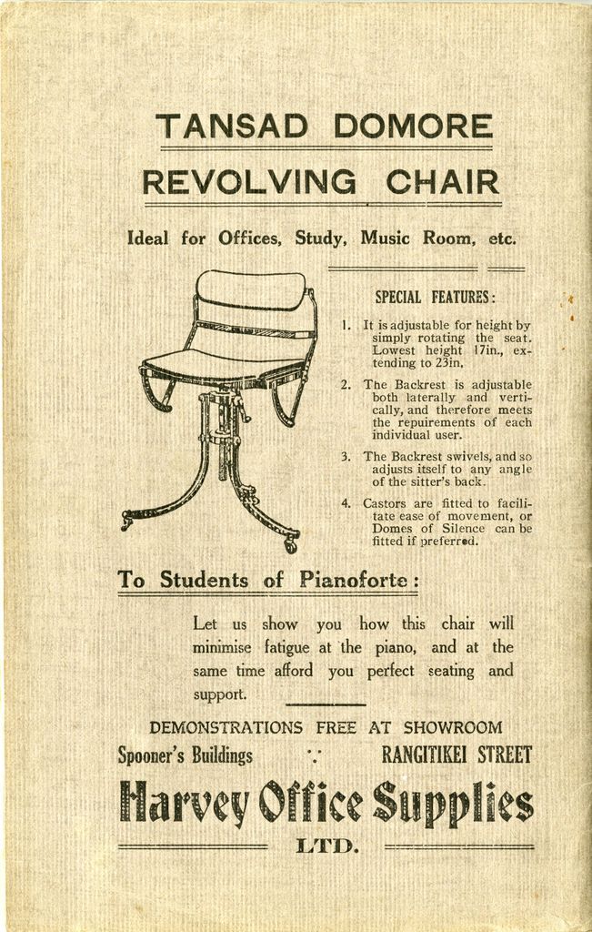 This is the programme for the Fifth Annual Festival of the Manawatū Competitions Society, which was held in the Opera House and Municipal Hall between 20 May and 28 May 1926. The competition categories included elocution (speech and drama), dance and music (both vocal and instrumental). Most entrants were children or young people. In addition to listing the events and names of competitors, the programme includes many advertisements for local businesses.