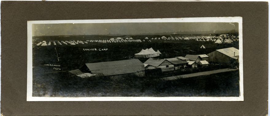 The N.Z. Rifle Brigade ("Dinkums") earlier known as the Earl of Liverpool's Own, trained at Rangiotu for active service in World War One. During World War One Manawaroa Te Awe Awe offered the Government the use of part of his farm for a training camp, to replace the camp at Trentham (Wellington) which had been evacuated.