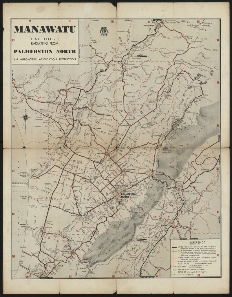- The cover of this map reads, "Manawatu Map Leaflet - Day Tours Radiating from Palmerston North. Compiled and Published by The Automobile Association (Manawatu) and (Auckland)."