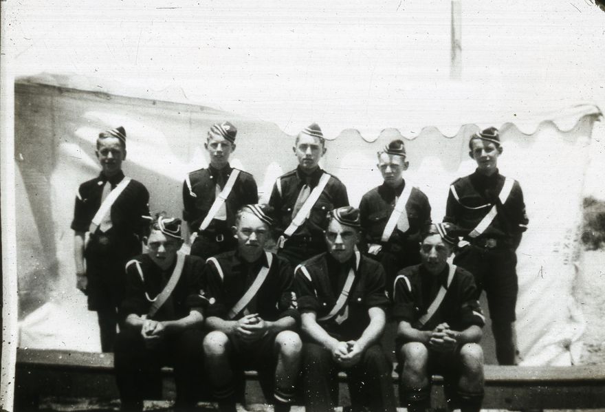 Unidentified members of the Boys' Brigade. It is assumed this image was shot at what is now the Foxton Beach Boy's Brigade Camp and Training Centre.