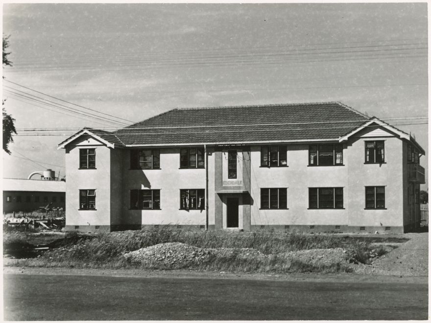 The Edendale Flats were constructed, along with the Penrose flats next door, in 1949. Each building held 8 flats. Due for demolition by the owners in 1982, the buildings were bought by the Palmerston North City Council for Council housing and relocated further along Rangitikei Street in 1984, near the entrance to Queen Elizabeth College.