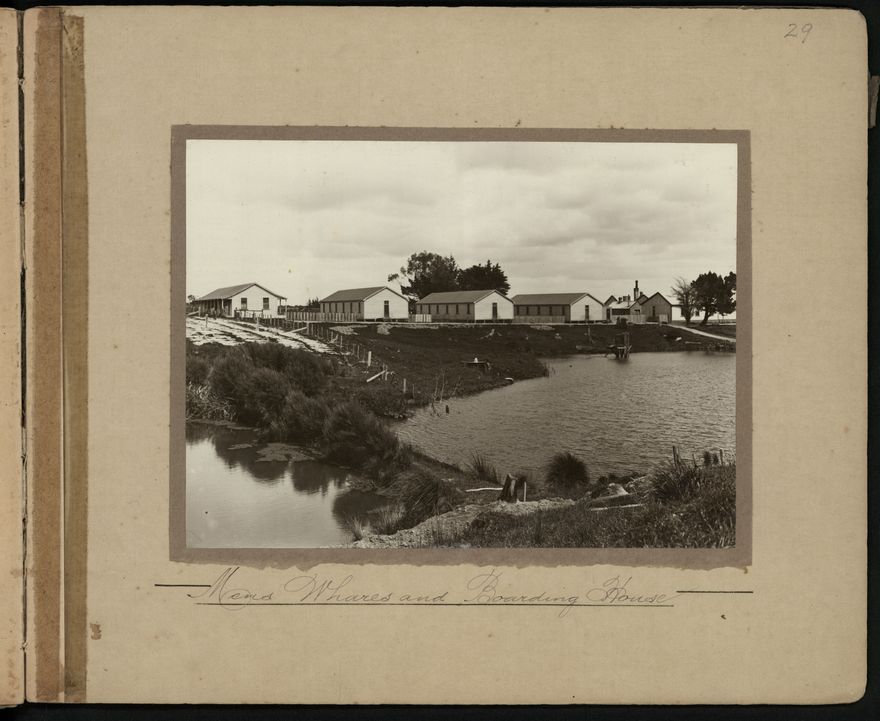 This photograph album contains photographs of the Seifert flaxmills Weka and Miranui. Flax workers are pictured cultivating, gathering, drying and processing the fibres. Details of the transport operations undertaken by cart and barge are also shown.