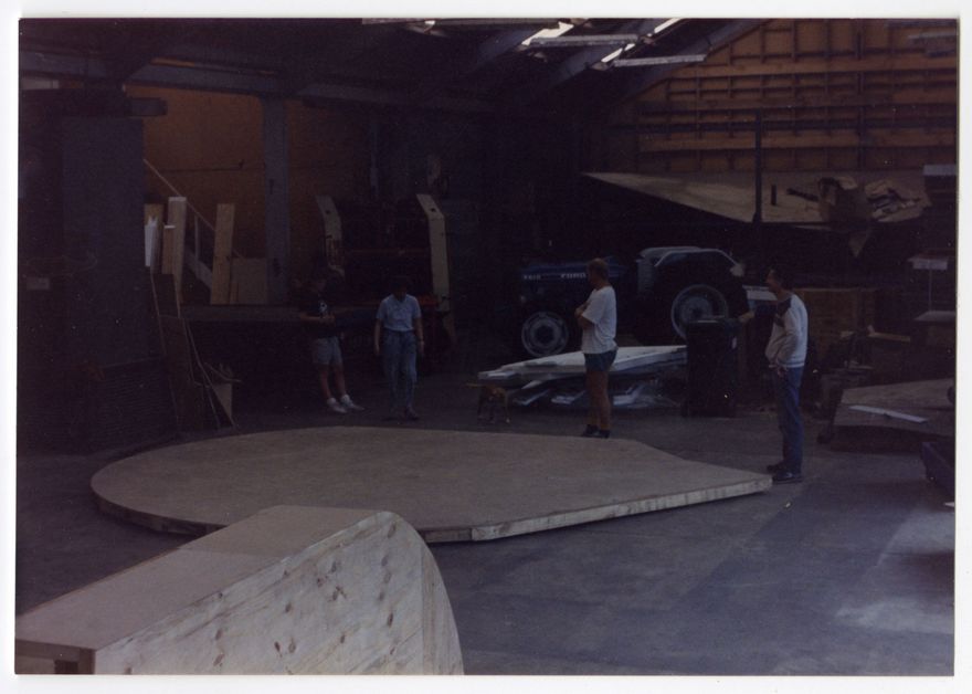 After being constructed off-site in various construction sheds around Palmerston North, the two revolving sets were brought to the Globe Theatre for assembly and painting by the Manawatu Theatre Society Stage Crew.