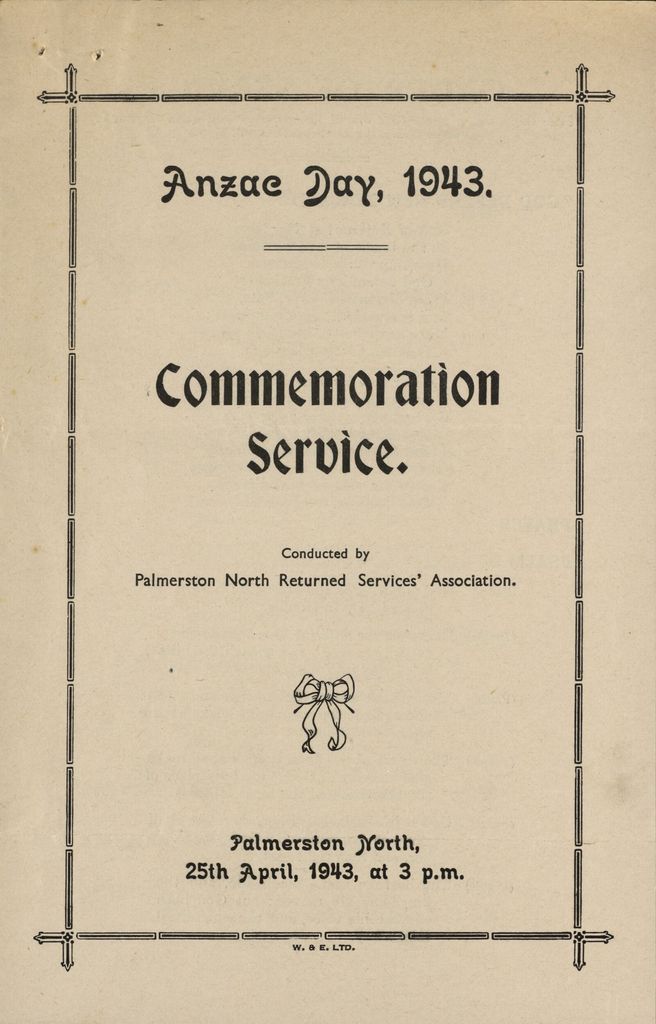 Programme for ANZAC Day 1943, as conducted by the Palmerston North Returned Services Association.