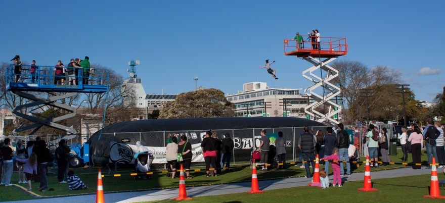 Rugby World Cup fans were able to enjoy a wealth of events in Te Marae o Hine – the Square during the 2011 Rugby World Cup, including taking part in the AirMAX Stunt jump. The Manawatū Standard reported "Those brave enough to take part could jump on tp the air bag from as high as 12 metres from a scissor lift set up beside it."