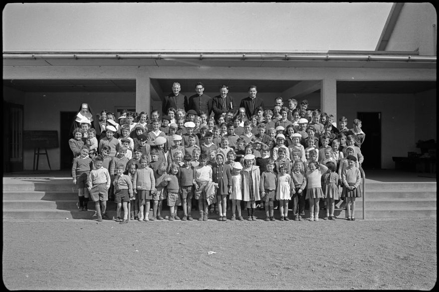 Caption: “This group was photographed on the final day of the Vacation School held at Our Lady of Lourdes School during the first week of the school holidays.”
