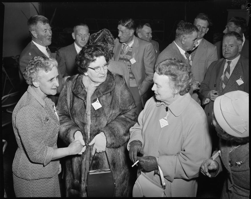 This image was taken for a story that ran in The Manawatu Evening Standard on 12 August 1960 "Former British trainees who attended Flock House from 1924 to 1931 met in the city today for their first reunion. Some of the first to arrive are shown in the above photograph. The reunion will last for three days."