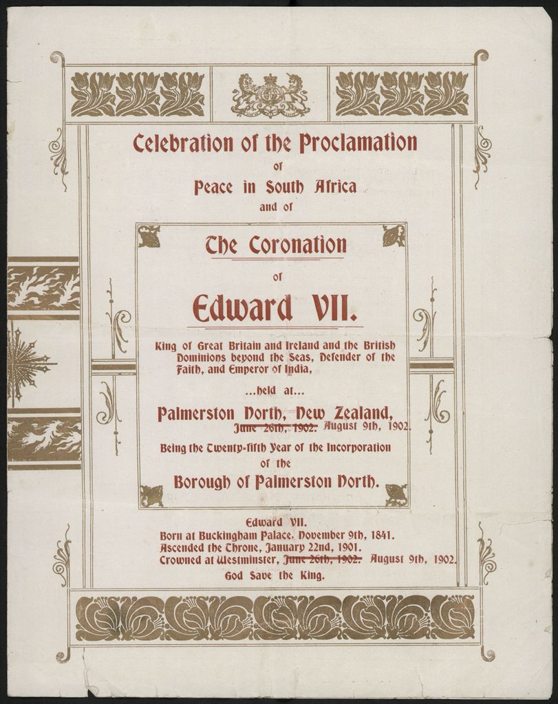 A programme from the Celebration of the Proclamtion of Peace in South Africa and of the Coronation of Edward VII.