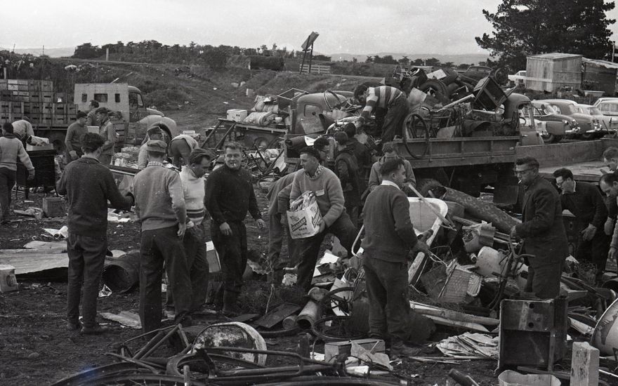 Caption: "A large number of volunteers was needed at the tip to salvage the saleable goods from the rubbish."