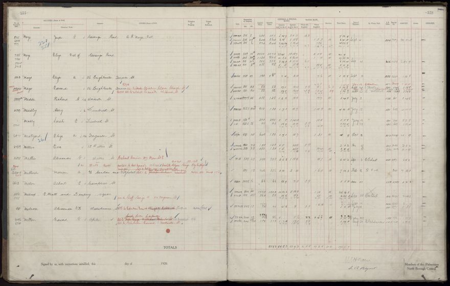 Palmerston North Borough Council rate book, listing rate payers for the years (1 April - 31 March) 1920 - 1921. Gives names, street, owner (if different to rate payer), legal description of property, capital and unimproved values and rates paid.