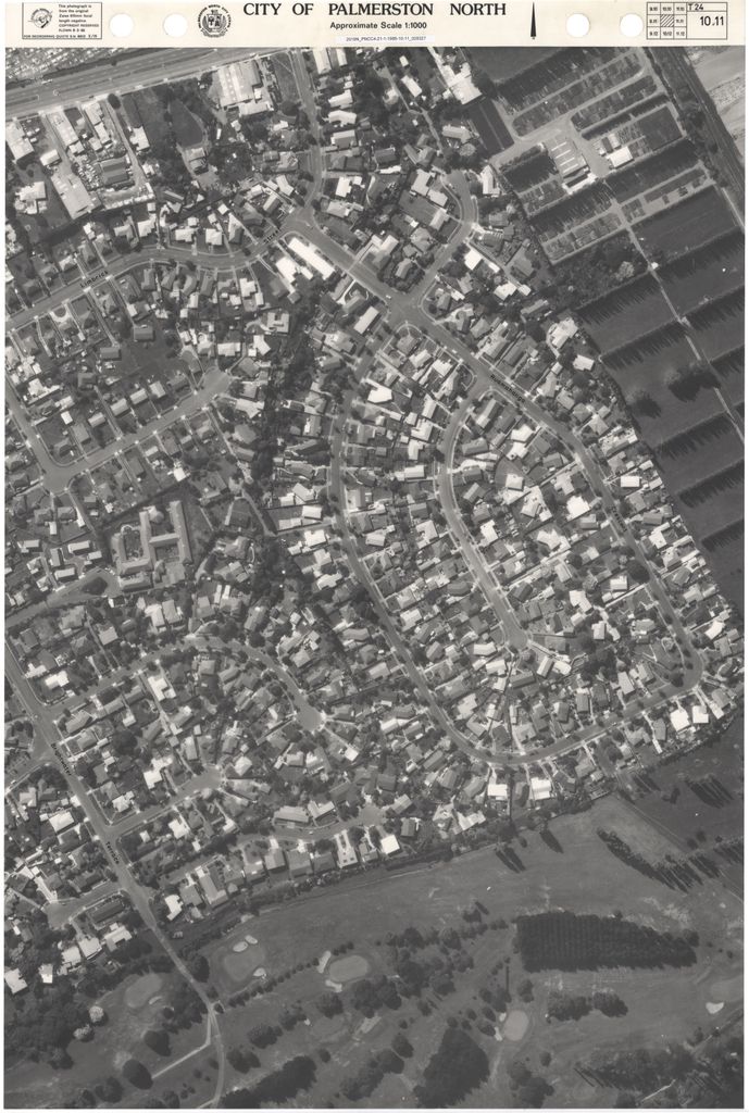 Key to 1986 aerial map survey of Palmerston North. Areas are laid out in grid format and have corresponding alphabetical and numerical number attached according to flight path. Names of streets are included on map. Scale of map is 1:12,500. Individual aerial maps scale are 1:1,000. Compiled by City Planning Department of Palmerston North Corporation..