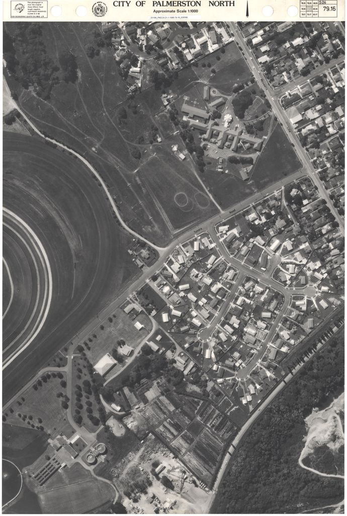 Key to 1986 aerial map survey of Palmerston North. Areas are laid out in grid format and have corresponding alphabetical and numerical number attached according to flight path. Names of streets are included on map. Scale of map is 1:12,500. Individual aerial maps scale are 1:1,000. Compiled by City Planning Department of Palmerston North Corporation..