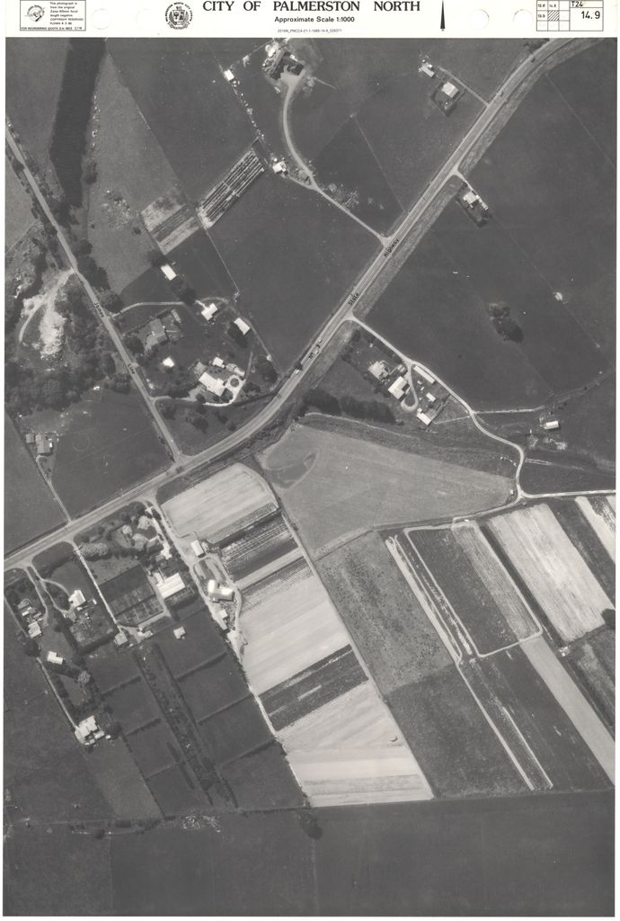 Key to 1986 aerial map survey of Palmerston North. Areas are laid out in grid format and have corresponding alphabetical and numerical number attached according to flight path. Names of streets are included on map. Scale of map is 1:12,500. Individual aerial maps scale are 1:1,000. Compiled by City Planning Department of Palmerston North Corporation..