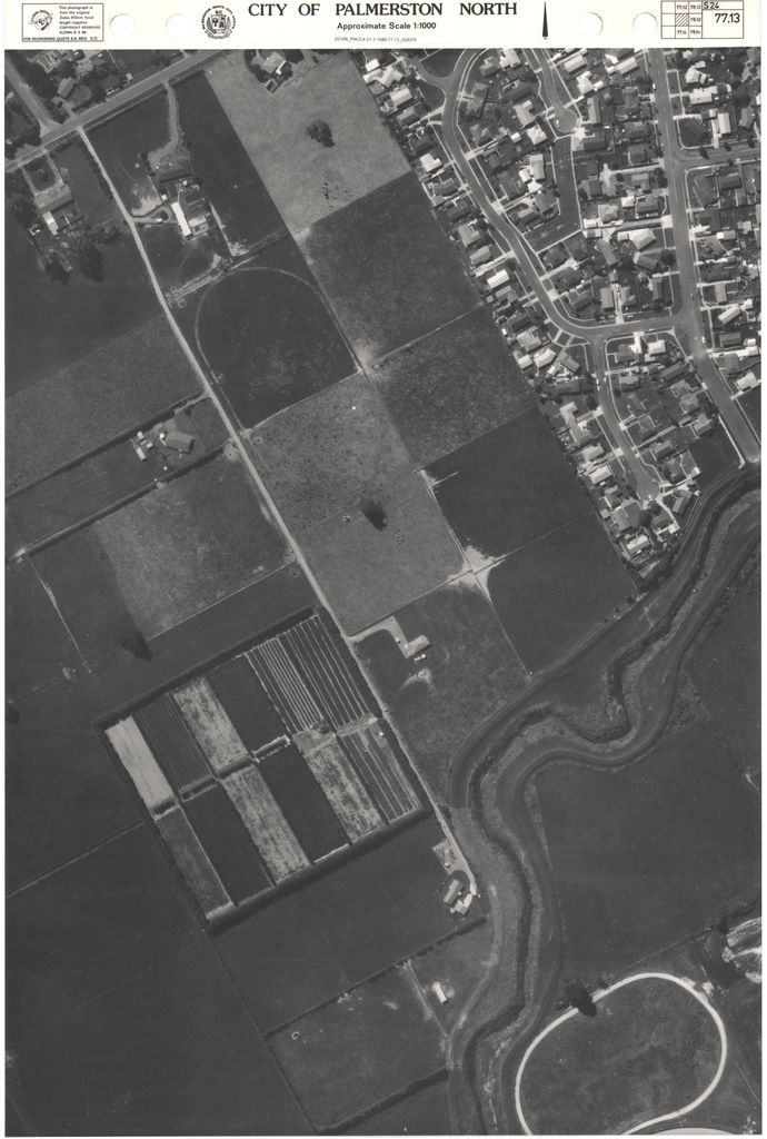 Key to 1986 aerial map survey of Palmerston North. Areas are laid out in grid format and have corresponding alphabetical and numerical number attached according to flight path. Names of streets are included on map. Scale of map is 1:12,500. Individual aerial maps scale are 1:1,000. Compiled by City Planning Department of Palmerston North Corporation..