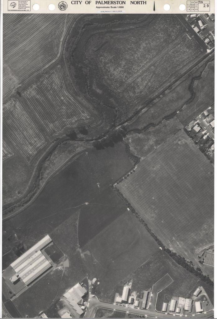 Key to 1986 aerial map survey of Palmerston North. Areas are laid out in grid format and have corresponding alphabetical and numerical number attached according to flight path. Names of streets are included on map. Scale of map is 1:12,500. Individual aerial maps scale are 1:1,000. Compiled by City Planning Department of Palmerston North Corporation..