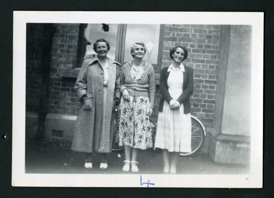 The camp was held at St. Andrew's Presbyterian Church on the corner of Church and Ashley Streets in Palmerston North. Sleeping accommodation was provided upstairs in the Memorial Sunday School Hall and in the larger Sunday School Hall. Camp cooks were, from left, Mrs Port, Mrs. Pilkinton and Mrs. Mills.