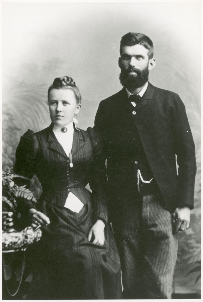 Ditlev and Kamma Monrad - married 1890. The original photo was taken by James Bragge, Manners Street, Wellington between 1890 and 1899. This image was digitised from a copy made by Tom Law in 1985.