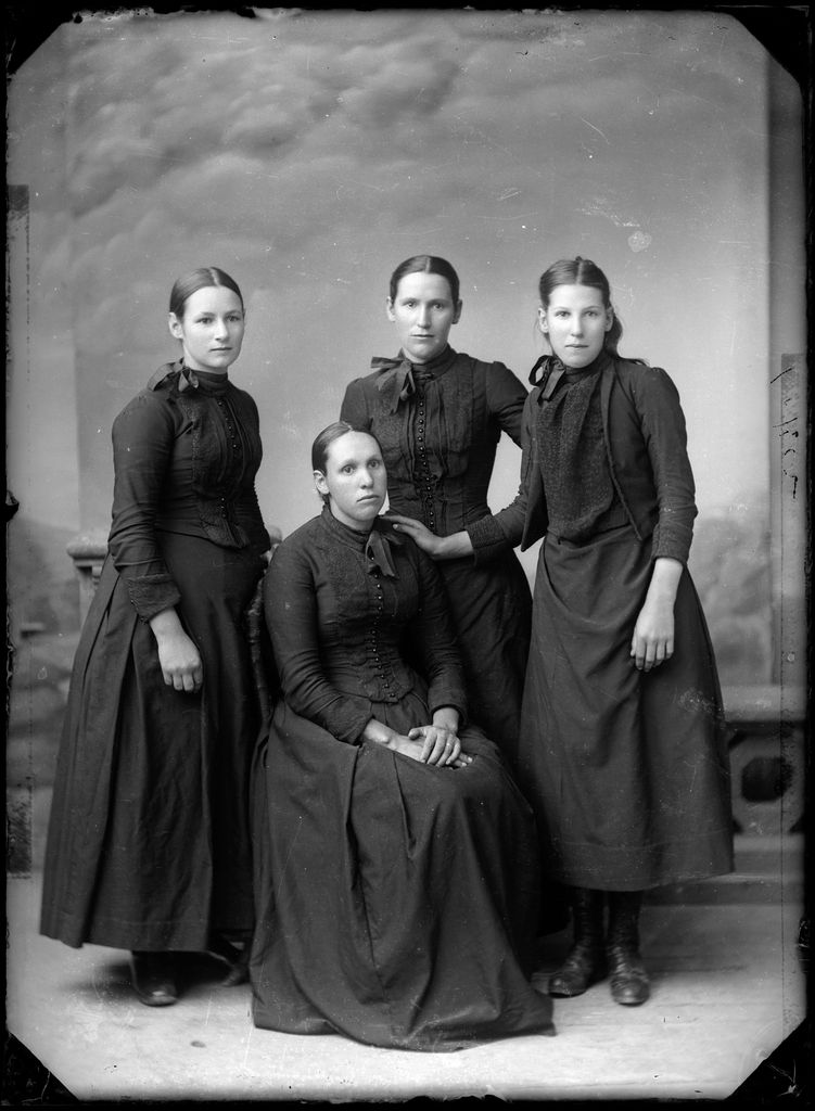 Tha studio portrait of possibly family members. The name "Cokers" is scratched on the glass plate. They may be the Coker sisters, who were family friends of the G W Shailer (the photographer).
