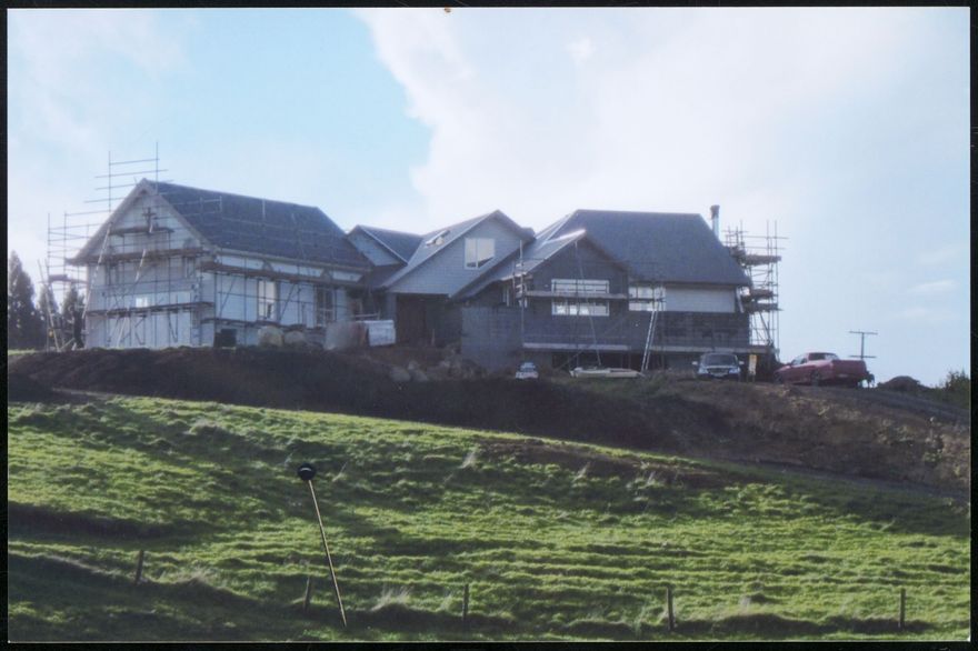 The Ashhurst Methodist Church (the left wing of the house under construction) that formerly stood in Bamfield Street, Ashhurst, was purchased in 2015 to become part of a newly built home at 56 Junction Road, Te Puna.