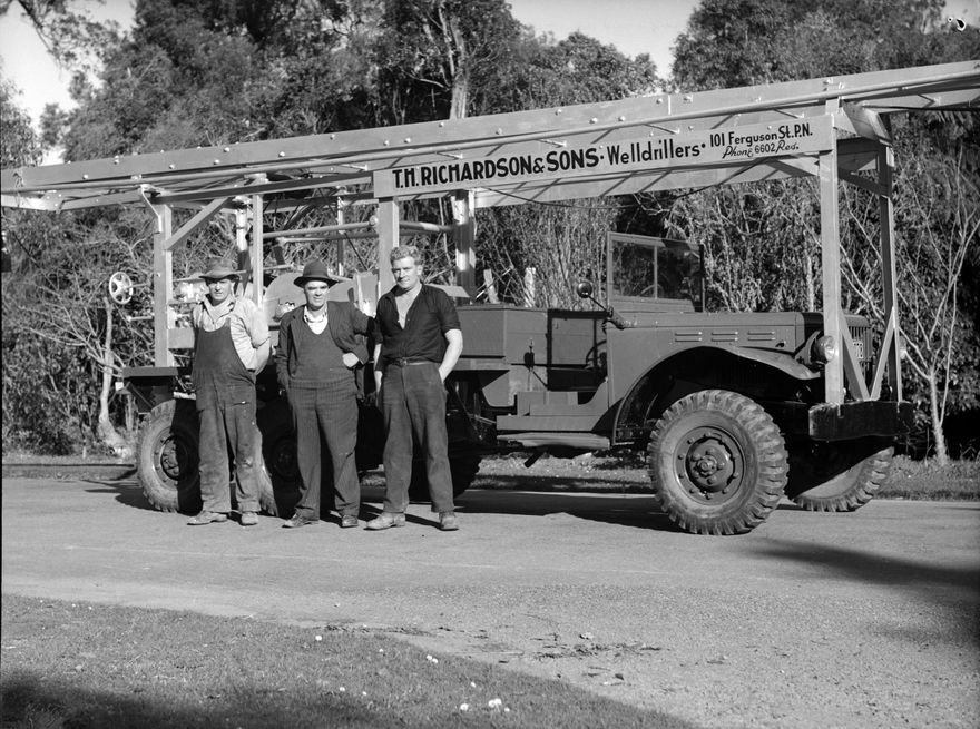 Richardson Drilling Co Ltd was founded in 1925 by Thomas Harold Richardson, as a water well contractor. The business was originally located at 37 Ferguson Street, which was renumbered over the years to 101 Ferguson Street, then 91 Ferguson Street, and then until at least 2010 the business was located at 2 Mihaere Drive, Palmerston North. The figures are unidentified.