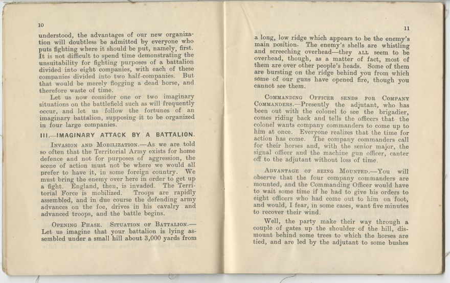 Special District Order No. 43/1915. By Colonel R. W. Tate, Commanding Wellington Military District. The subject of this paper is the four-company organization recently adopted for the infantry of the Regular Army, and which will shortly be also adopted for the Territorial Force. Originally this article was given as a lecture to the London Units of the Territorial Force, by Brevet-Major Hereward Wake, King's Royal Rifles.