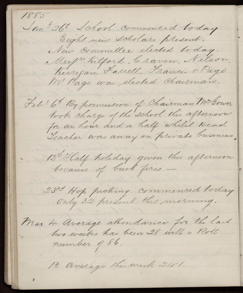 Ashhurst School, Head Teacher's Log Book, 9 February 1880 - 28 October 1887