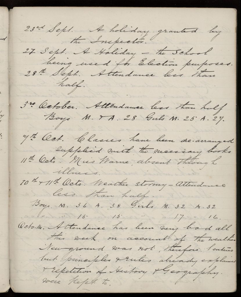 Ashhurst School opened in September 1879, with Mr F. Whibley as the temporary head teacher. The first permanent head teacher was Mr Alfred Gower (c.1880-1887). In addition to documenting the activities of the school, this log book also includes: School Inspectors’ Reports; an inventory of school furniture, 1885; and an inventory of school requisites, undated.