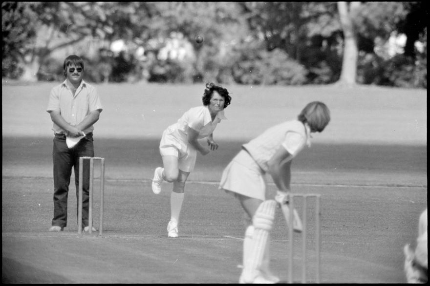 This image was taken (but not published) by the Evening Standard between the 30th and 31st of December 1980. It depicts a moment of action from the Hallyburton Johnstone Shield 2-day match between the Canterbury and Wellington women’s cricket teams. The match was drawn.