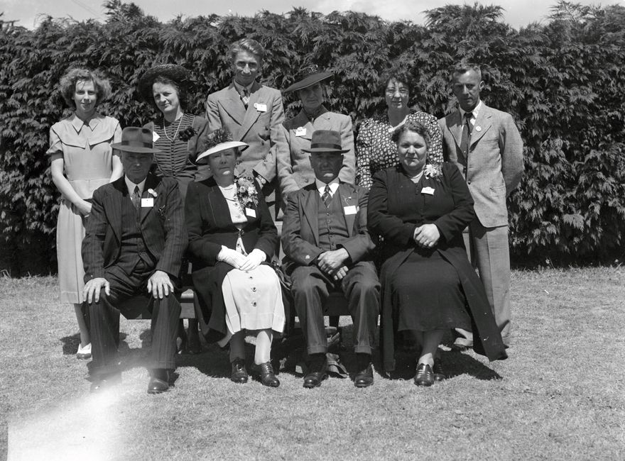 This photograph shows past teachers of Woodlands Road School.Woodlands Road school opened on 11 August 1891 with a roll of 26 pupils. The school existed for seventy seven years, finally closing on 14 December 1967. Woodlands Road School was located on the outskirts of Woodville and the building is now used as a community hall [2012].