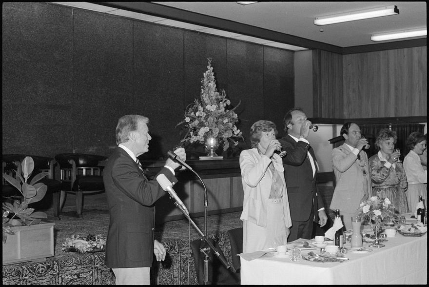 These images were taken by the Evening Standard on the 11th of February 1984 but were not published. They depict former United States president Jimmy Carter and his wife Rosalynn at a luncheon hosted by city officials.