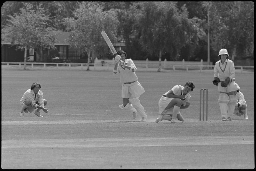 This image was taken (but not published) by the Evening Standard between the 27th and 29th of December 1980. It depicts a moment of action from the Hallyburton Johnstone Shield 2-day match between the Central Districts and North Shore women’s cricket teams. The match was drawn.