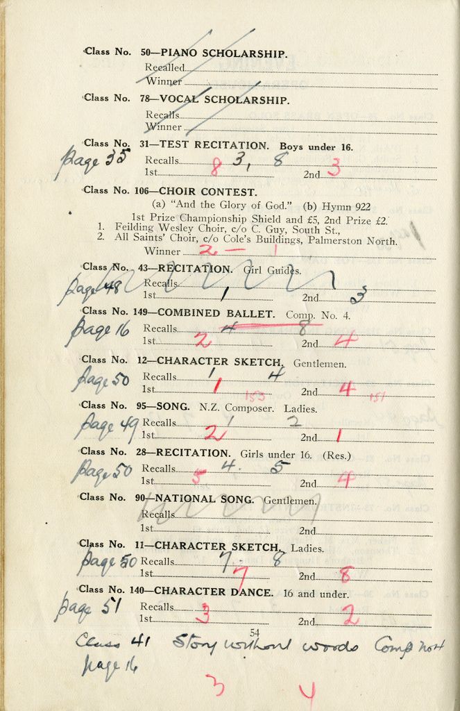 Manawatū Competitions Society, Official Programme, Sixth Annual Festival