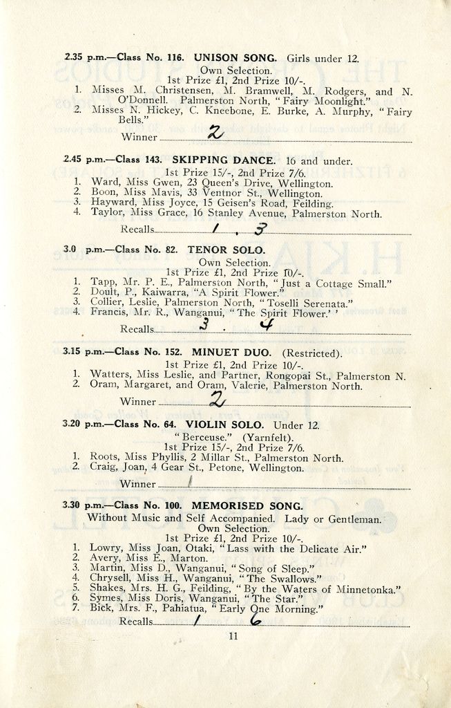 Manawatū Competitions Society, Official Programme, Sixth Annual Festival