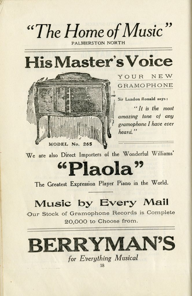 This is the programme for the Sixth Annual Festival of the Manawatū Competitions Society, which was held in the Opera House and Municipal Hall between 6 May and 14 May 1927. The competition categories included elocution (speech and drama), dance and music (both vocal and instrumental). Most entrants were children or young people. In addition to listing the events and names of competitors, the programme features many advertisements for local businesses. This copy belonged to W. Newlands, secretary and treasurer of the society, and includes additional pages and handwritten notes.