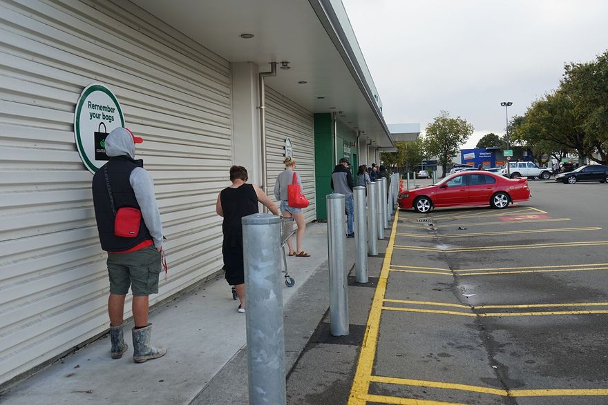 Customers queued at the Countdown supermarket on Broadway Avenue. During the COVID-19 pandemic it was recommended that people keep at least 2 metres apart to help minimize the transfer of the virus.