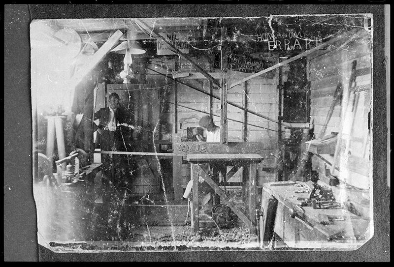 Lewis and Coutts Sash and Door Factory was on Church Street. The person carving is thought to be Ben Coutts.