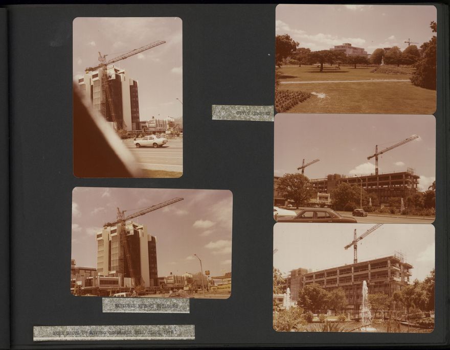 A photograph album from Alexander Clark LTD, a Palmerston North-based home and commercial decoration business. Images include shop displays, staff at work and at social events, and work projects.