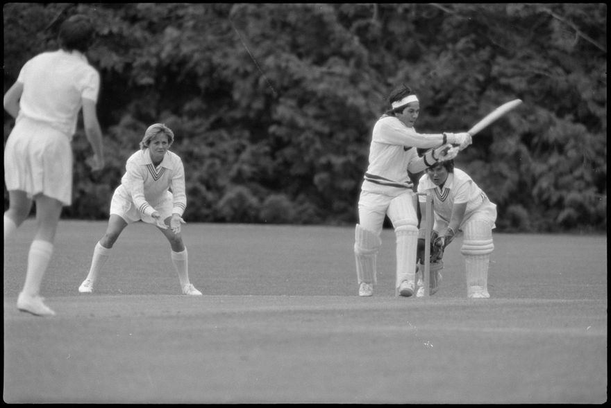 This image was taken (but not used) by the Evening Standard on 24 January 1982. It depicts the New Zealand Women’s Cricket team taking on the Indian Women’s Cricket team in a limited over (60) match for the Hansell's Vita Fresh Women's World Cup 1981/1982. The match was held at Fitzherbert Park. New Zealand won by 8 wickets.