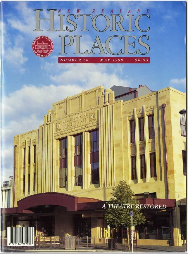 An article by Ian Ogier, that appeared in New Zealand Historic Places, no. 68, May 1998, pp.6-8, describing the restoration of The Regent Theatre on Broadway Avenue.