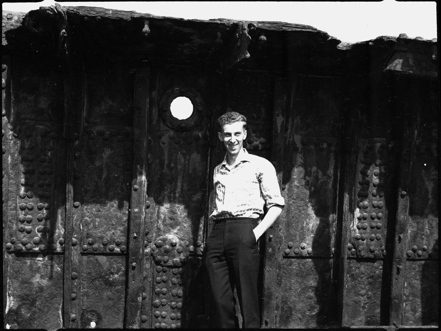 Unidentified people visit the "Hydrabad" wreck. The "Hydrabad" went ashore on Waiterere Beach on 25th June 1878 in gale force winds while on voyage from Lyttleton to Adelaide. It was a full-rigged iron ship of 1250 tons net register, built in Scotland in 1865. Length 229.5 ft, beam 32.2 ft, depth 23.2 ft. The hull remains lying in the sand virtually intact but is slowly sinking and will eventually become completely covered. Surrounded by water at high tide, the hull is dry at low-tide. Most of the beams and frames of the hull are still in position and the lower parts of the masts are still standing - part of one broken mast lies beside the hull pointing out to sea.