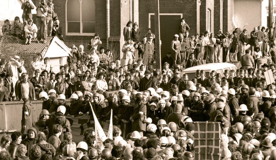This image was taken (but not used) for a story that ran in The Manawatu Evening Standard on 01 August 1981. Extra police personnel were flown into Palmerston North in anticipation of game-day anti-Springbok Tour and anti-Apartheid protests. The Standard reported there were 1000 police, including a special riot squad, and 5000 protestors. The 1pm March culminated in a 24 minute standoff with the police lines on the corner of David and Cuba Streets.