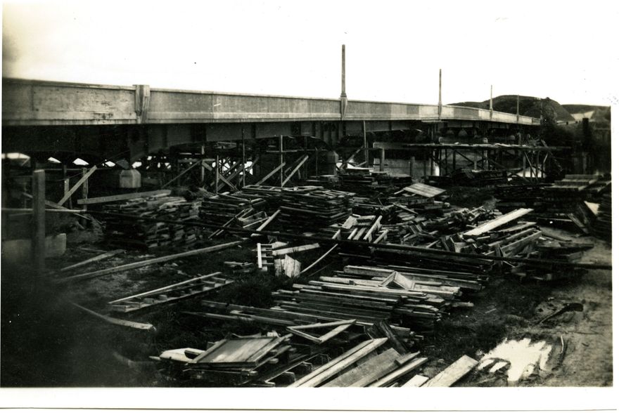 One of a group of photographs from Ron Grammer's working life in bridge engineering in the 1940s and 1950s. Unidentified bridge.