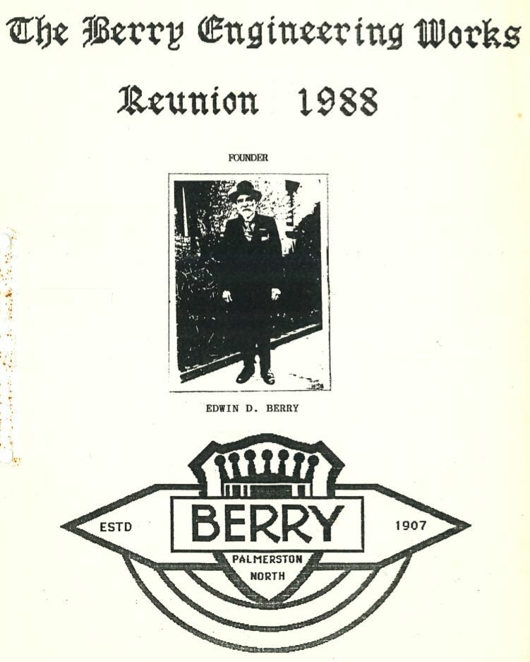 Berry Engineering was established in 1907 by Mr Edwin Berry, in Main Street, as E. D. Berry General Engineer. As they grew, they moved to Ferguson Street, then to Ashley Street, and sons Frank, Zean and Edwin Jnr joined the business. They manufactured a wide variety of industrial equipment, and were particularly involved with the dairy industry over the years. They were bought by the Mauri brothers and renamed Mauri Engineering in 1977, then in the 1980s they became Protech Engineering and moved to Railway Road.