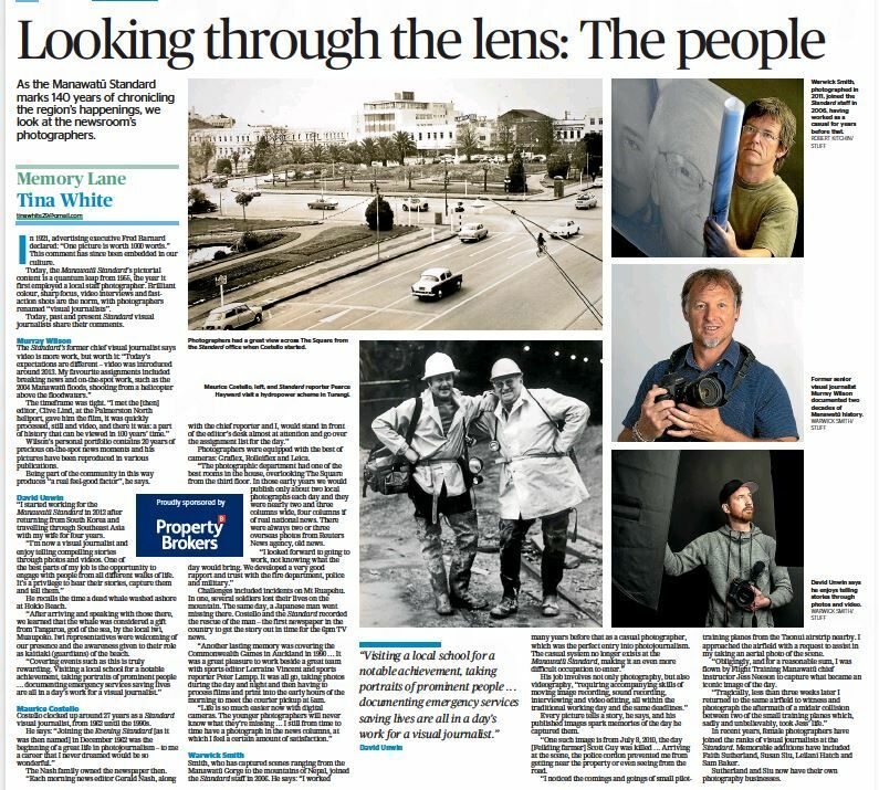 Journalist Tina White's weekly "Memory Lane" article in the Manawatū Standard. On the paper's 140th anniversary, past and present photographers from the Manawatū Standard share stories and back-room memories. With contributions from Murray Wilson, David Unwin, Maurice Costello, Warwick Smith.