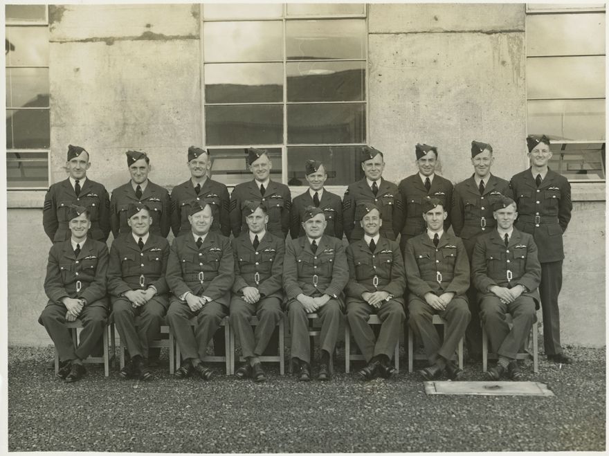 Presumed to be a class of pilots in training during World War Two, with Philip Fowler, training instructor, 5th from left, front row. Probably taken at Ohakea Air Base, given the date.